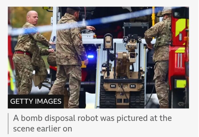Police say the suspect’s condition cannot be confirmed due to “suspicious items on his person”, with a bomb disposal unit at the scene.
