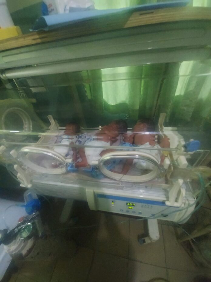 The couple made the appeal to Our Correspondent early this week when he visited them at the hospital and recounted that the mother of the Triplets was admitted for two weeks before the preterm birth of the Triplets, in addition, they had to be placed in incubator after birth, and series of test was carried out, among which are sugar test which is quite expensive for all three of the babies.